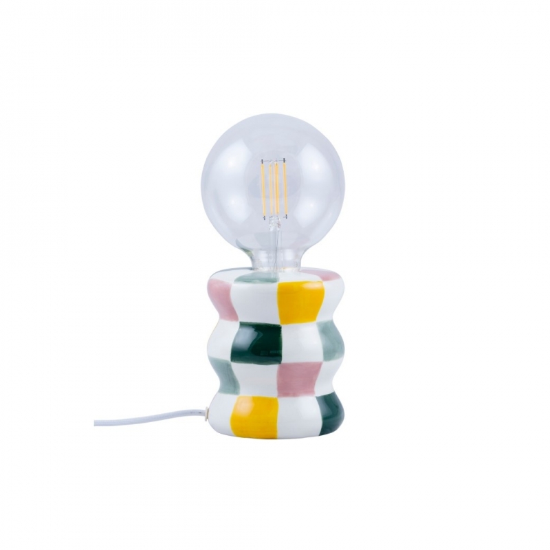 Conçue en Belgique, cette lampe, inspirée par le dynamisme de l'art de vivre espagnol et ornée du motif ludique Crazy Squares, apporte une touche de gaieté à n'importe quelle pièce.